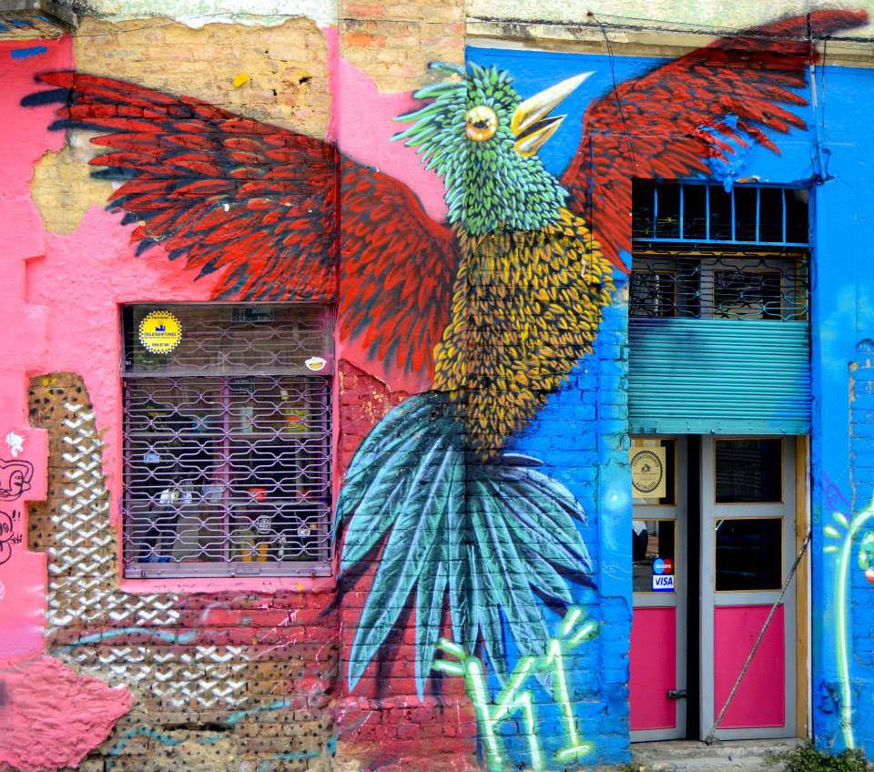 After an hour in Bogota’s famous Gold Museum we went to the neighborhood known as Macarena. This could be compared to SoHo in New York City, Palermo in Buenos Aires or Boston’s South End. The area is surrounded by “Torres del Parque”, SantaMaria Bullring, and Monserrate Mountain. It is an area surrounded by universities with streets lined with coffee shops, restaurants and bars. The exclusive area of Bogotá is surrounded of embassies, editorial headquarters, architect offices and art galleries. The narrow streets and more narrow sidewalks make this part of the city a place you must visit.